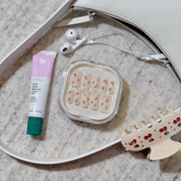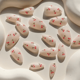 The most elegant and timeless cherry nail design, painted in four different colors.Inspired by Kourtney Kardashian's fruit nail design. You can mismatch this style with Clean Girl Vibes