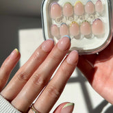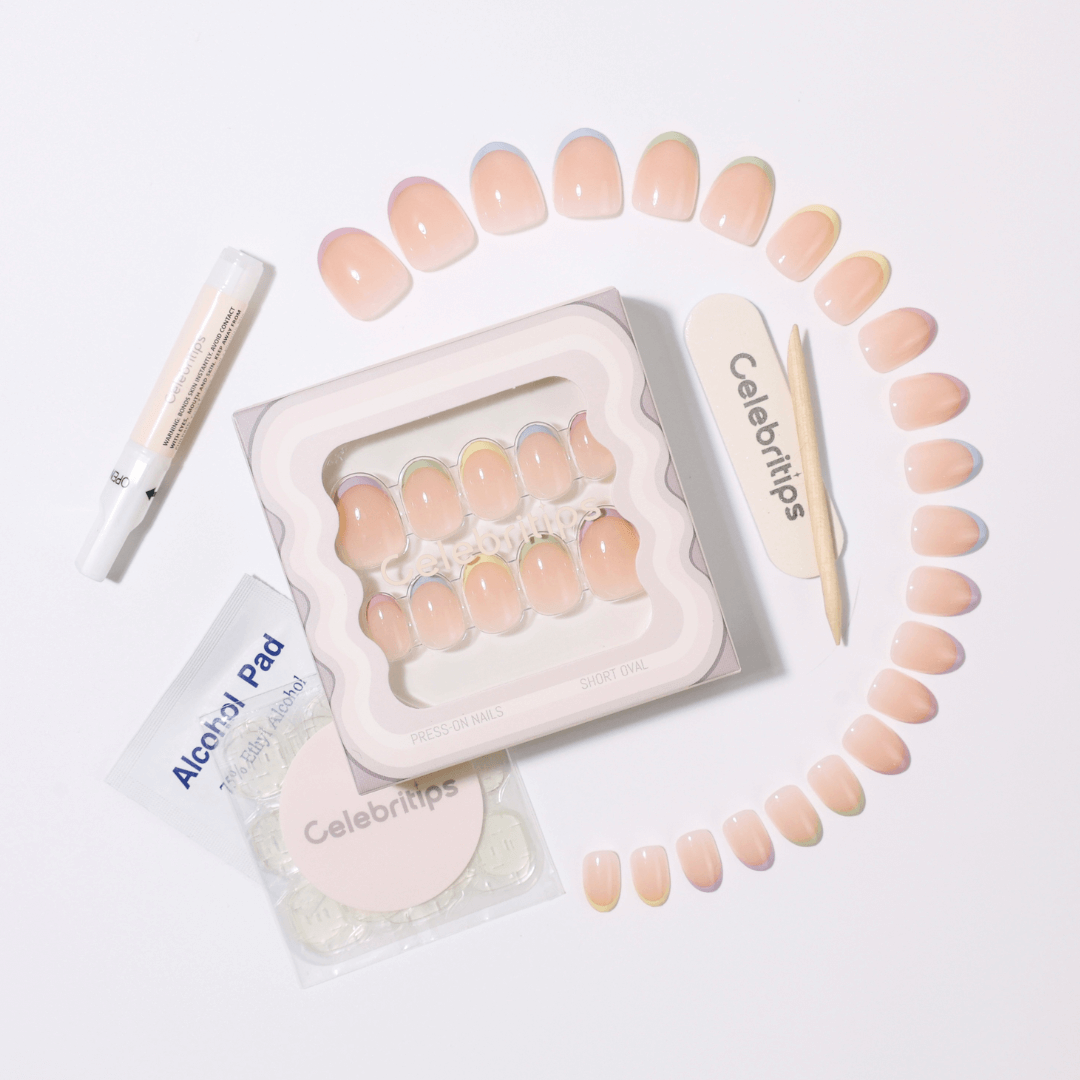 Can’t decide what color you’re feeling? Why not wear them all! Pastel Rainbow French adds a cute and playful touch to any look, with its short, oval shape and micro-tipped, soft pastel hues on every finger. 🌈 It’ll be hard to find an outfit that doesn’t go well with these nails!