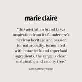 Introducing our next generation corn powder. New & improved gluten free skin-loving formula, safe for sensitive skin. Super milled barely-there powder that creates an invisible veil. So lightweight it’s undetectable on skin. Designed to effortlessly reduce oil and stop shine. Also helps remove redness. Lightly dust Corn Setting Powder over the skin to help your favorite foundation last all-day or set concealer in place. Also works as a base to prep eyelids for eyeshadow. This is a multitasking delight. Take corn setting powder with you for touchups and complexion rescue throughout the day or night. This baby is housed in a sleek 100% aluminum case. Our revolutionary patent pending Makeup-Wheel Refill Case wheel is free from plastic, hinges, paints, mirrors and glues. It’s refillable when you run out and easy to recycle. Corn setting powder ticks all the boxes for high performing sustainable beauty!