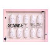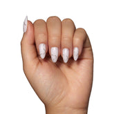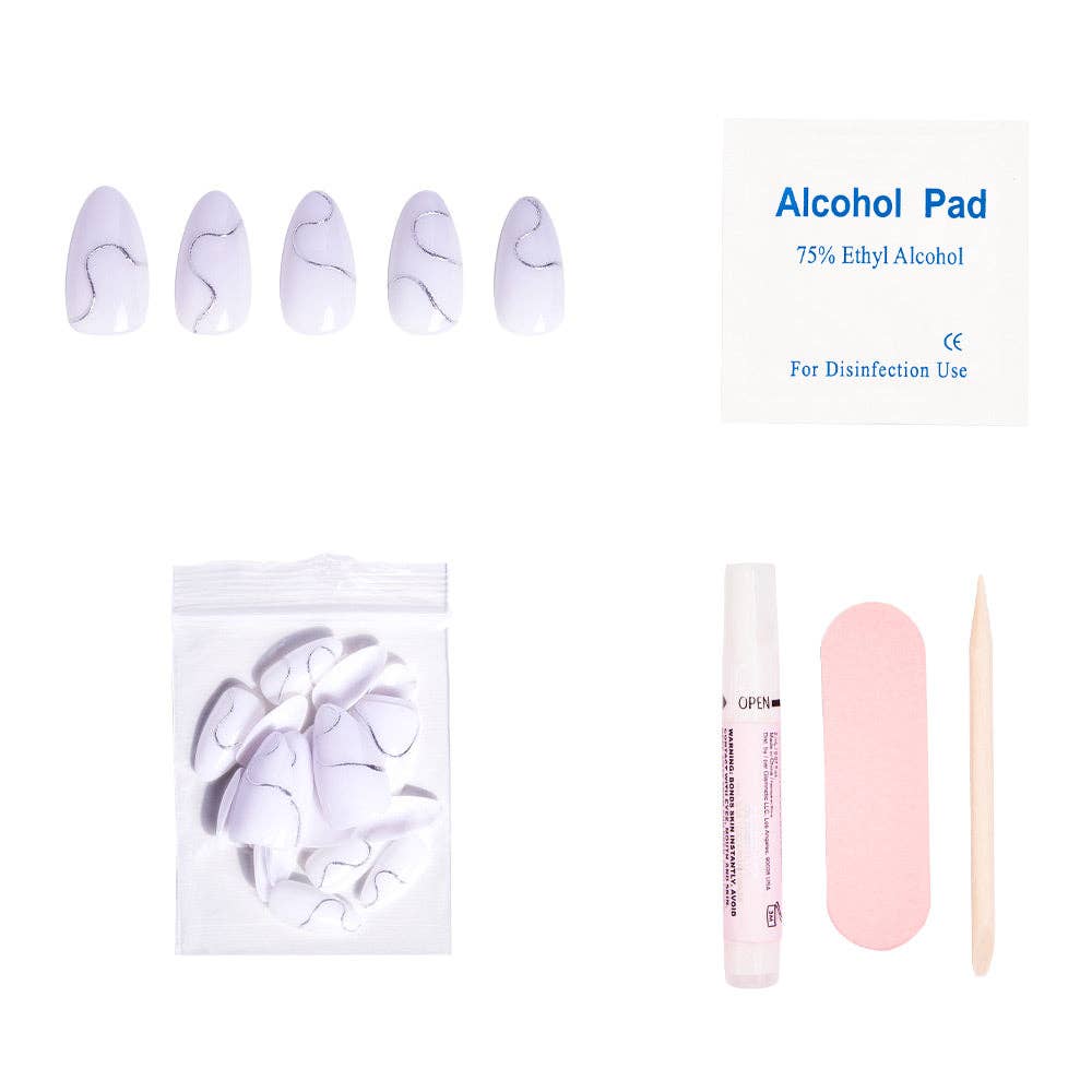 Show off your winter style game with the Silent Night nail set. This classic design with a twist features a natural, semi-transparent white base with silver 3D swirls you'll love to dress up or down. Plus, the always-in-style short almond shape is perfect to pair with all your casual to glam looks this holiday season.