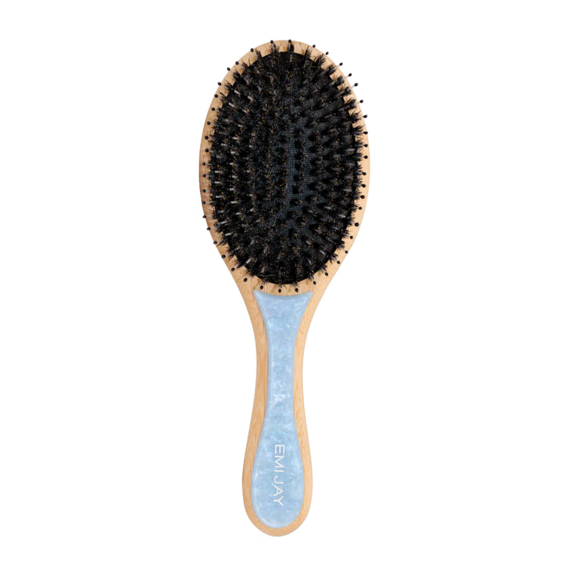 Meet the Flat Brush, where dual bristles work together to create a styling masterpiece. This brush is crafted with precision and features a harmonious blend of nylon bristles for effortless detangling, complemented by boar bristles that provide a glossy finish and help banish flyaways. It effortlessly adapts to the needs of any hair type, making it the ultimate everyday essential for those seeking a flawless and elevated hair care experience.