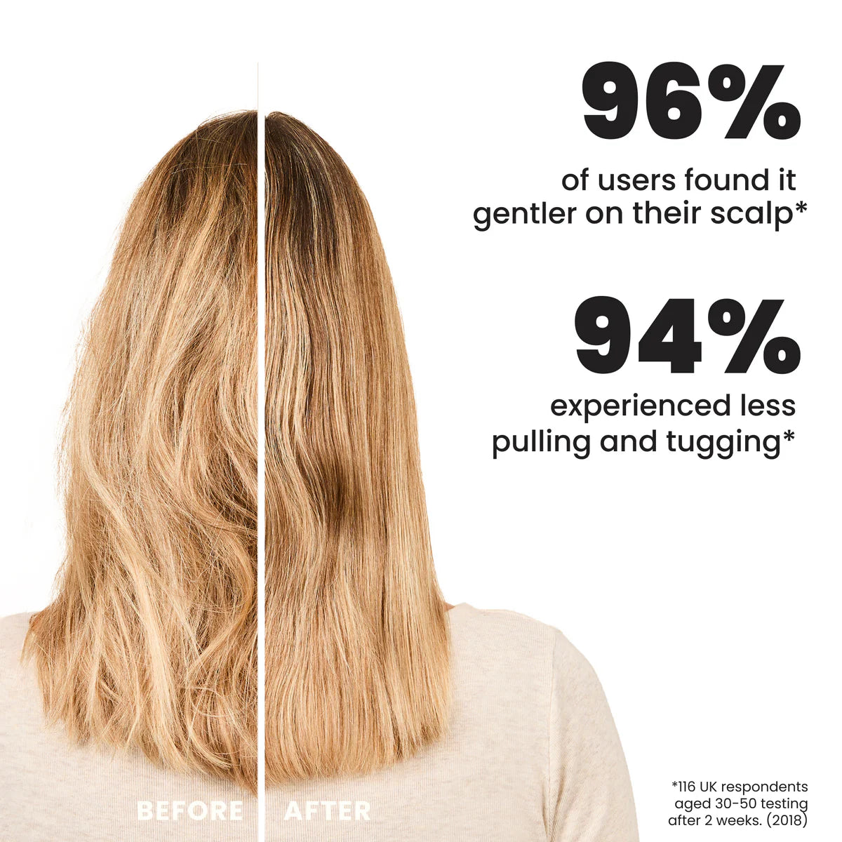 The patented two-tiered teeth technology is gentle on vulnerable, shower-fresh hair, meaning less breakage, more of that running-your-fingers-through-your-hair feeling. The long teeth detangle, while the shorter teeth smooth - a team effort at its finest.