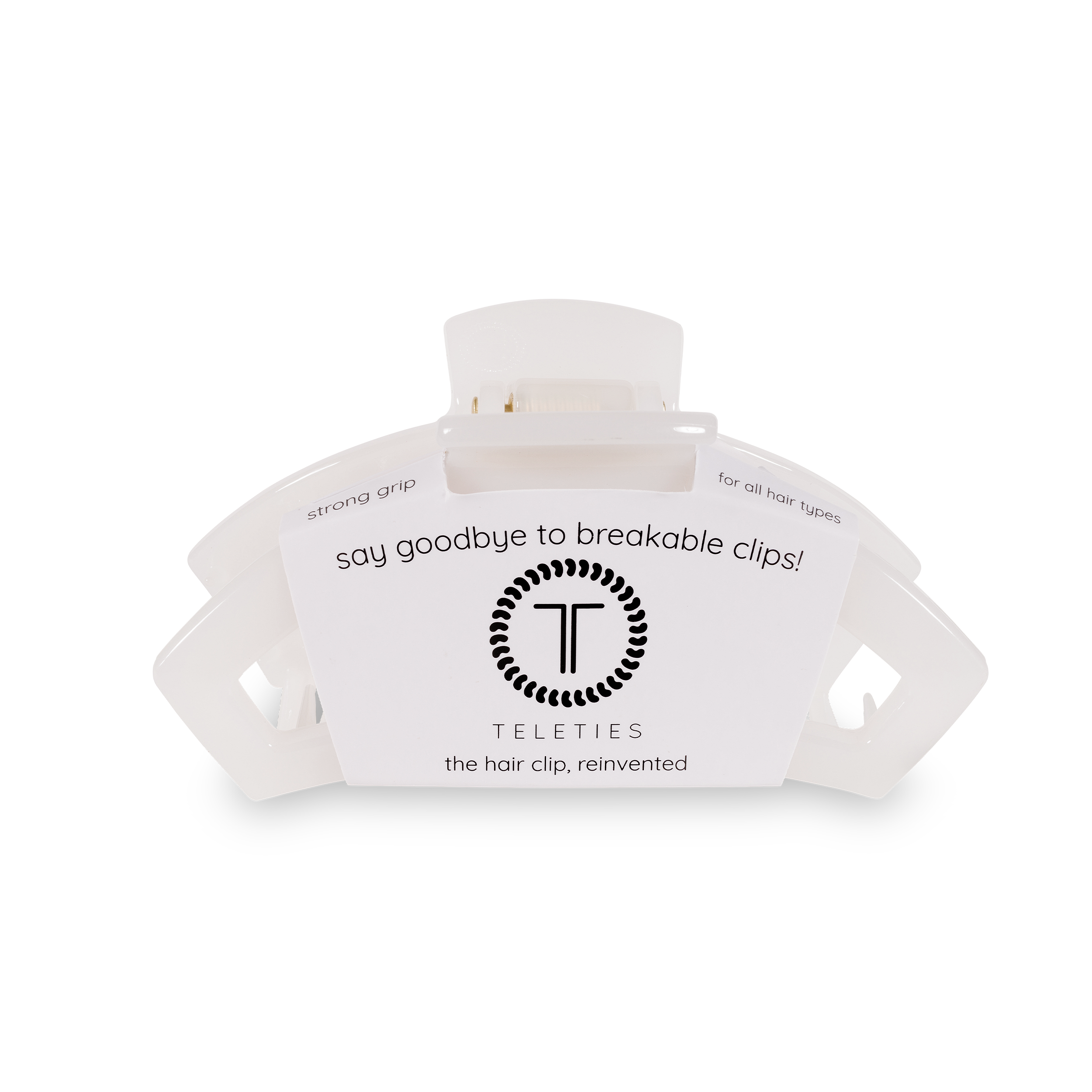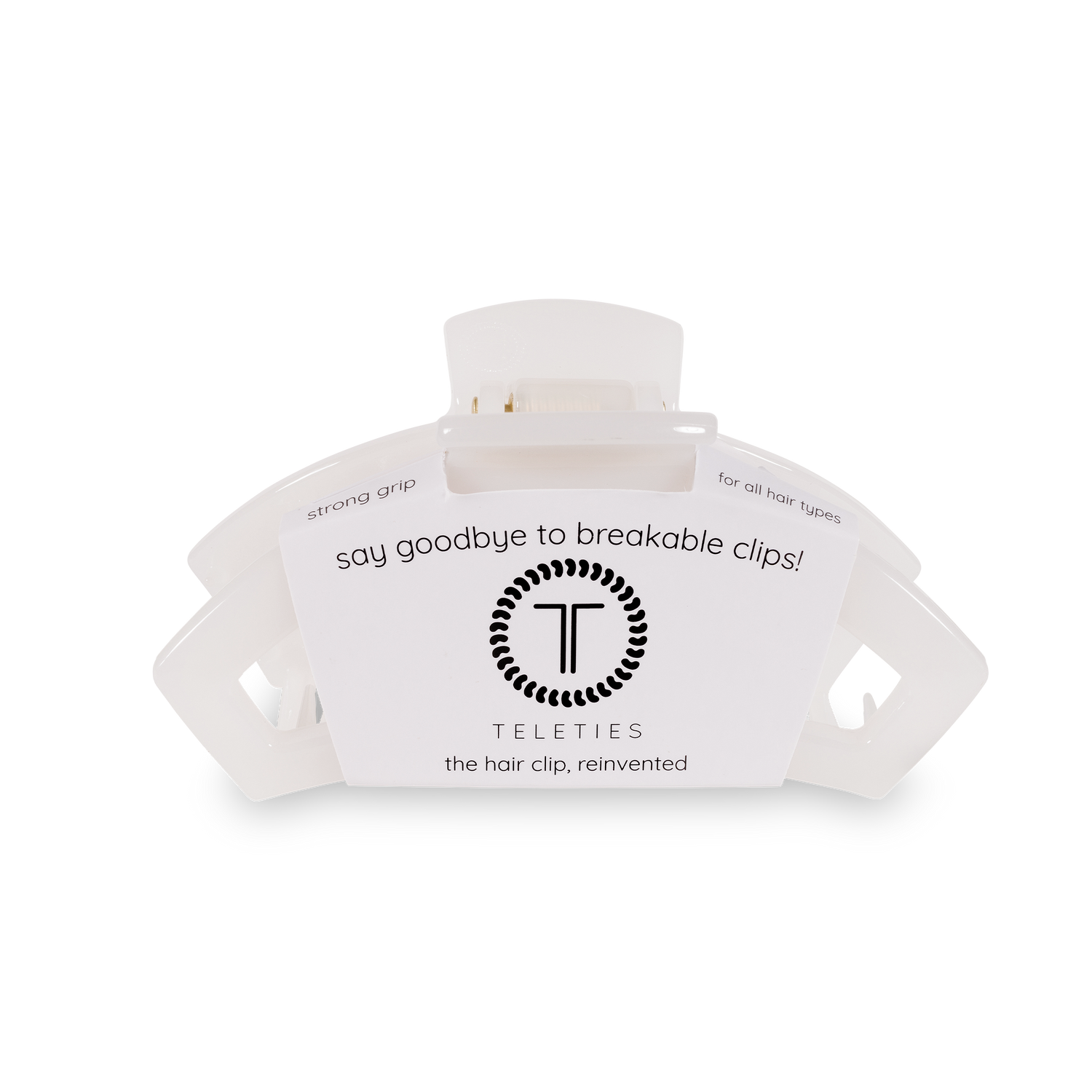 Open Hair Clip offers the same incredible advantages as our Classic Claw Clip, but with a unique open-style design that allows your hair to show through. Say goodbye to breakable clips! Perfected the hair tie and now have re-invented the hair clip. Each clip has bendable teeth that take back to shape, they work on all hair types and have a strong hold. Hold your hair and enhance your style with the new TELETIES Clip! Medium clips are great for thick to medium thickness of hair. Large clips are great for thick hair.