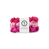 Your TELETIES just got an upgrade! The TELETIES Silk Scrunchies are made of 100% natural silk, making them super soft and gentle for your hair. It also prevents breakage and damage while you snooze. With innovative TELETIES spiral coil inside, you get the same features of our game-changing hair ties, now covered in silk! Get ready to wake up with hip, happy and healthy hair! The small-size scrunchie is best for thin to medium-thickness of hair. The large size is best for thick hair.