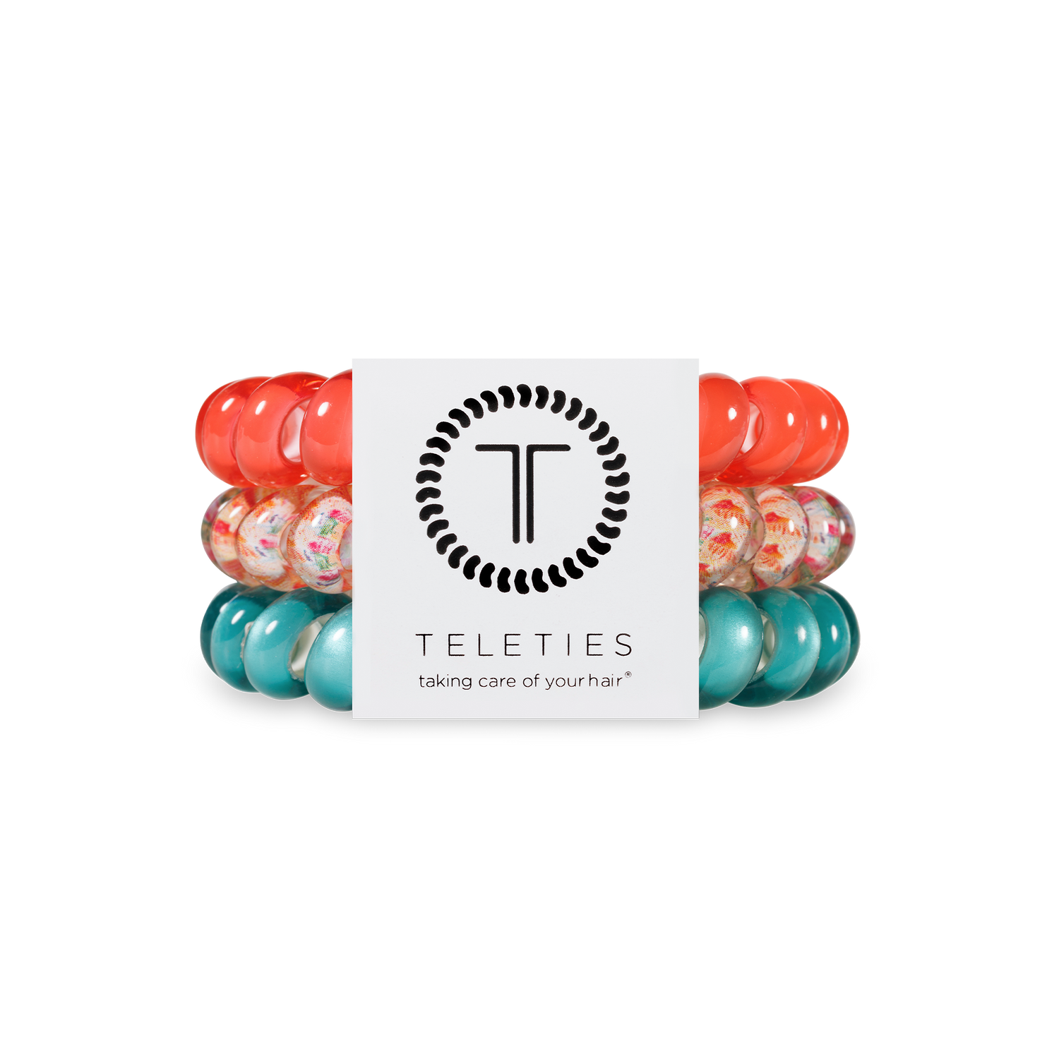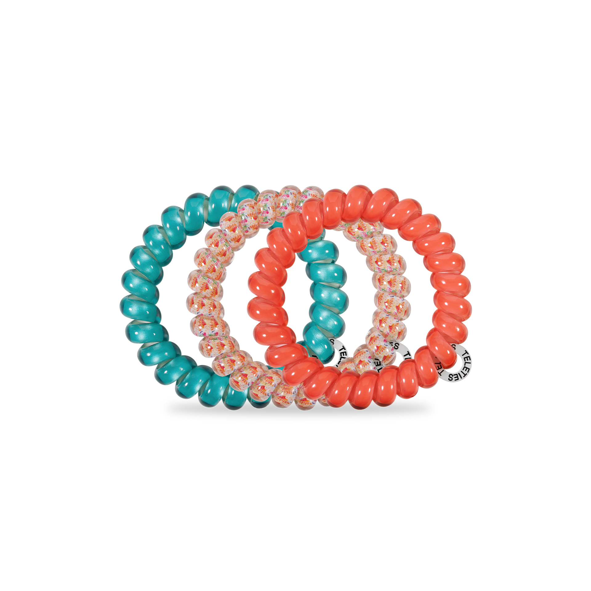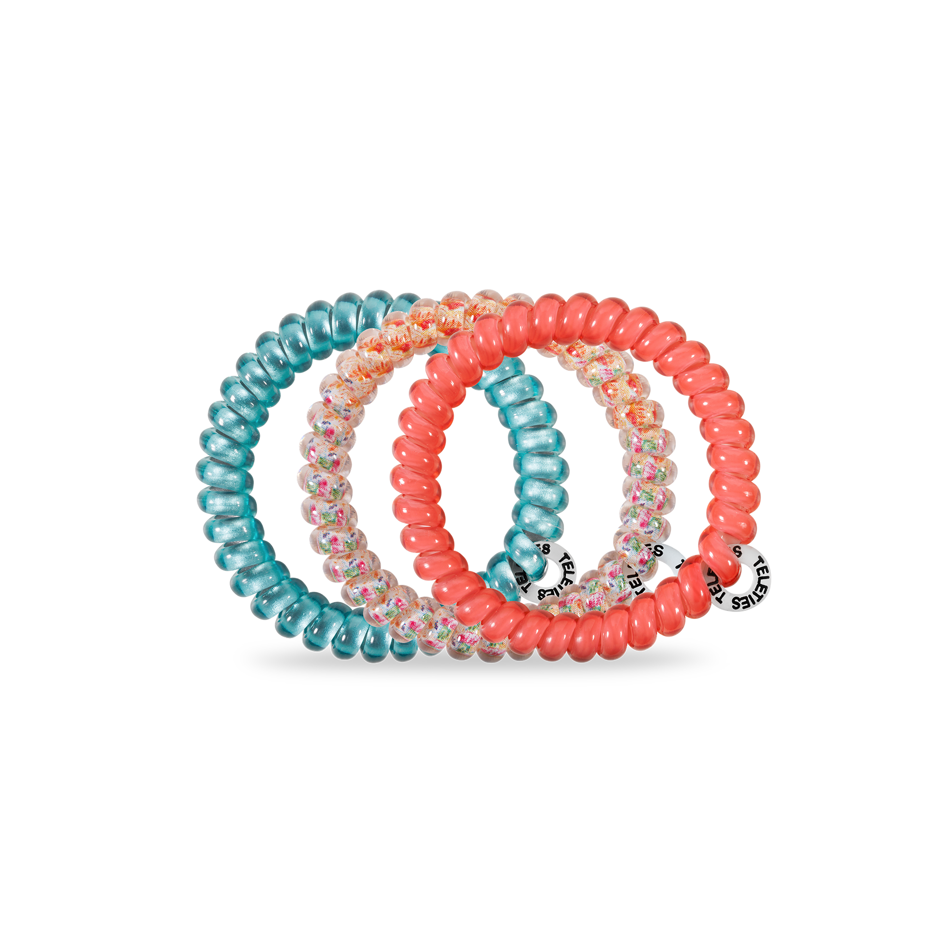Hold your hair and enhance your style with TELETIES. The strong grip, no rip hair tie that doubles as a bracelet. Strong, pretty and stylish, TELETIES are designed to withstand everyday demands while taking your look to the next level. Sold in packs of three.