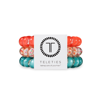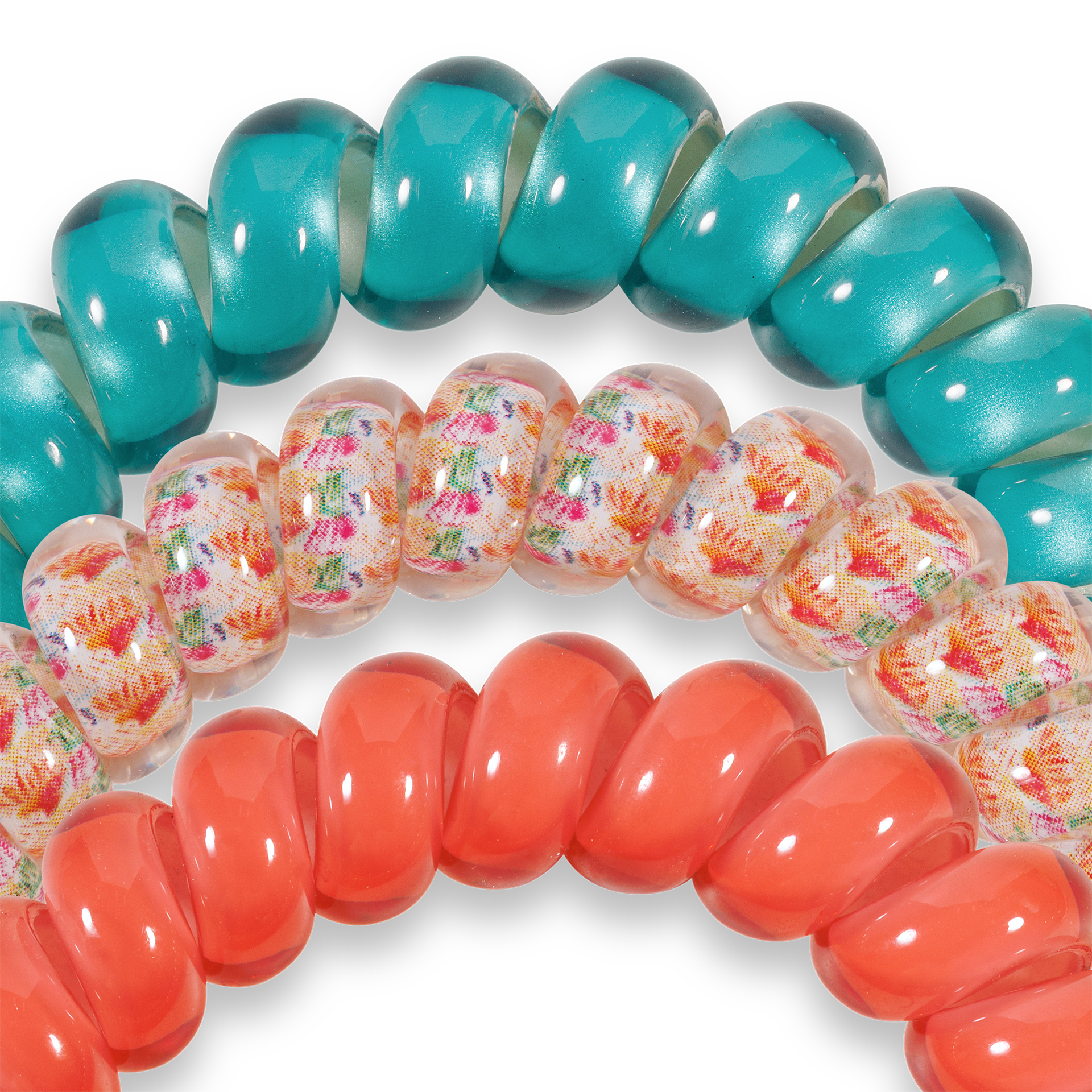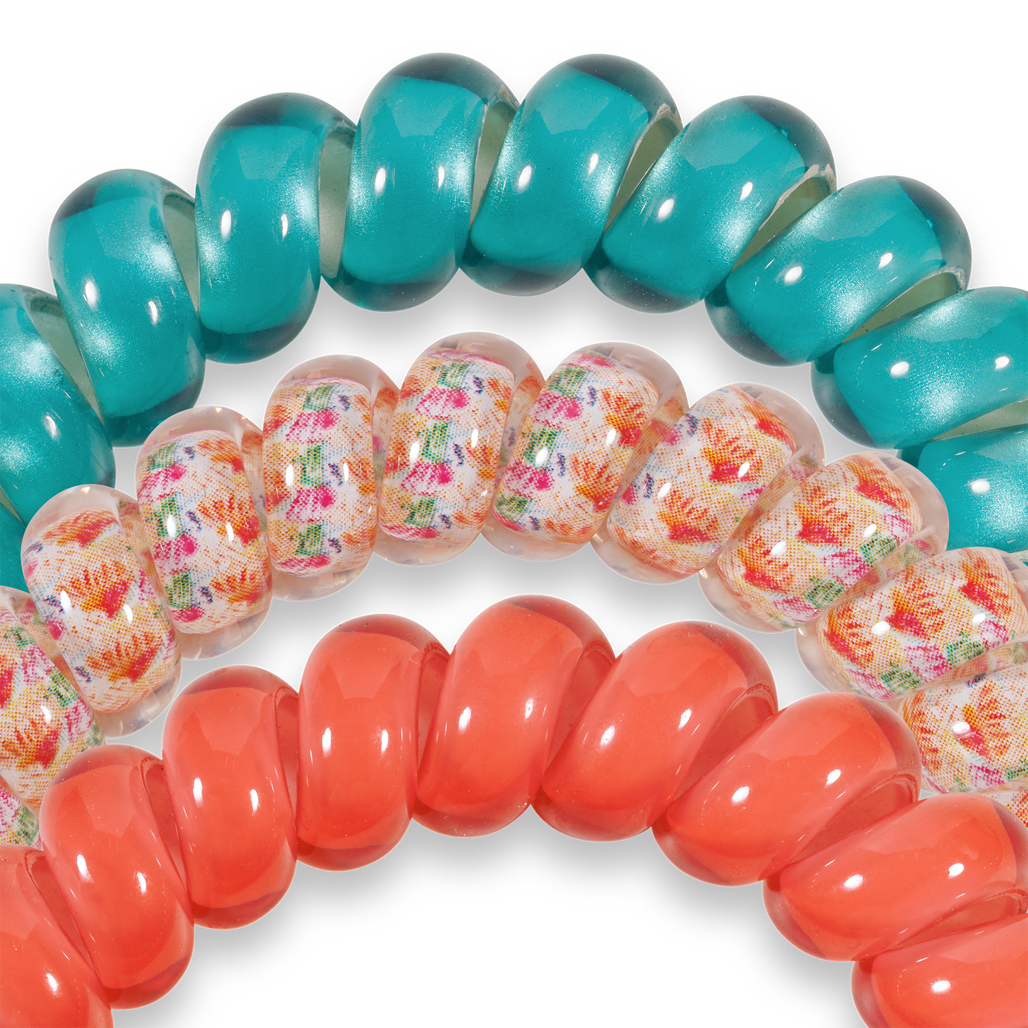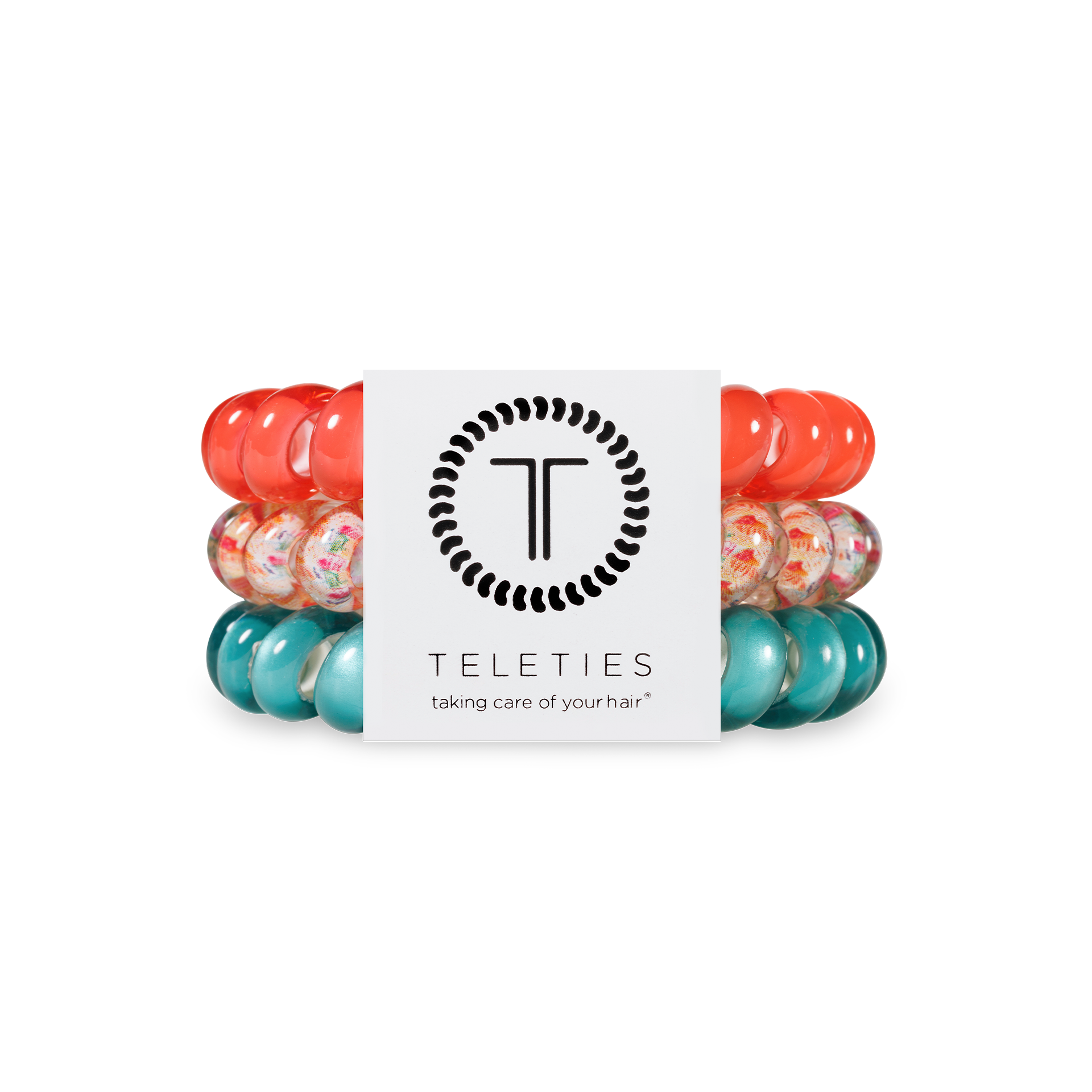 Hold your hair and enhance your style with TELETIES. The strong grip, no rip hair tie that doubles as a bracelet. Strong, pretty and stylish, TELETIES are designed to withstand everyday demands while taking your look to the next level. Sold in packs of three.