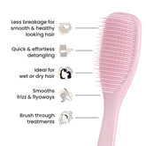Intelligent teeth flex over tangles rather than pulling meaning less hair breakage. Quick, easy, and painless detangling. Hair is left smooth, shiny and tangle free.