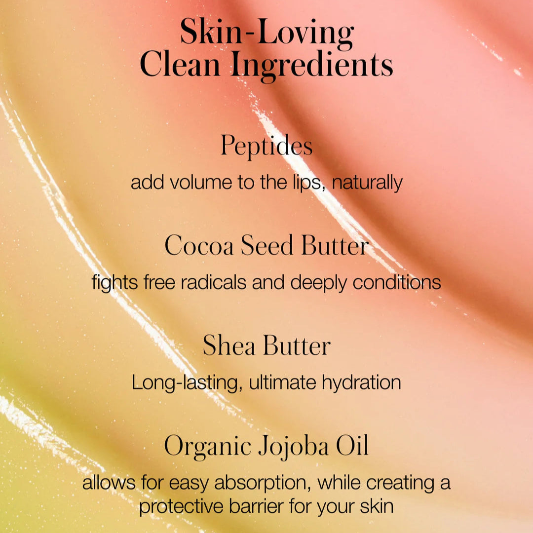 A multitasker that works as a treatment balm, a sophisticated gloss, and a subtle, stingless volumizer. Skin-nourishing, dewy-textured, 3-in-1 layer of glow that reacts to your body's natural pH for a personalized vibrant pink pop of lip color. Formulated with plumping peptides and soothing botanical butters, this dew-it-all gloss features a slanted tip applicator for controlled precision and comes in an artist’s tube made with 100% recycled aluminum so you can squeeze out and use up every last drop before recycling.