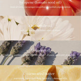 The luxe blend of complexion-fortifying plant ingredients makes this a dream for your skin, loaded with antioxidants to neutralise free radicals and support a youthful complexion. Tomato seed oil is the heroine, great for improving skin elasticity and known as one of the world’s richest sources of lycopene. Lycopene helps heal dryness and encourages smooth skin texture. Hyaluronic acid, cocoa butter and vitamin E round out this beautiful formula that sinks into skin like a long drink of water. Lavender and chamomile soothe skin and uplift all beauty rituals. Restores all complexions to a healthy glow.