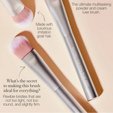 Expertly designed using luxuriously soft imitation goat hair, our Skin2Skin Everything Brush helps to deposit just the right amount of product to the face, while its flexible bristles make it easy to control and blend for a natural look. So, what’s the secret to making this brush ideal for everything? It’s in the weight and shape of the bristles: not too light, not too round, and slightly firm. This helps to achieve control and precision while feeling featherlight on the skin.