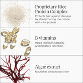 Protein Treatment: Water/Aqua/Eau, Saccharomyces/Rice Ferment Filtrate*, Brassica Alcohol*, Squalane*, Cetearyl Alcohol*, Cetyl Alcohol*, Oryza Sativa (Rice) Bran Water*, Hydrolyzed Rice Protein*, Sargassum Filipendula Extract*, Oryza Sativa (Rice) Bran Oil*, Brassicyl Isoleucinate Esylate*, Prunus Amygdalus Dulcis (Sweet Almond) Oil*, Capryloyl Glycerin/Sebacic Acid Copolymer*, Diheptyl Succinate*, Behentrimonium Methosulfate*, Guar Hydroxypropyltrimonium Chloride*, Cetrimonium Chloride, Rosa Canina Fruit Oil*, Glycerin*, Arginine*, Potassium Sorbate, Sodium Benzoate, Pentylene Glycol*, Citric Acid*, Fragrance (Parfum), Dehydroacetic Acid, Benzyl Alcohol, Iron Oxides CI 77491