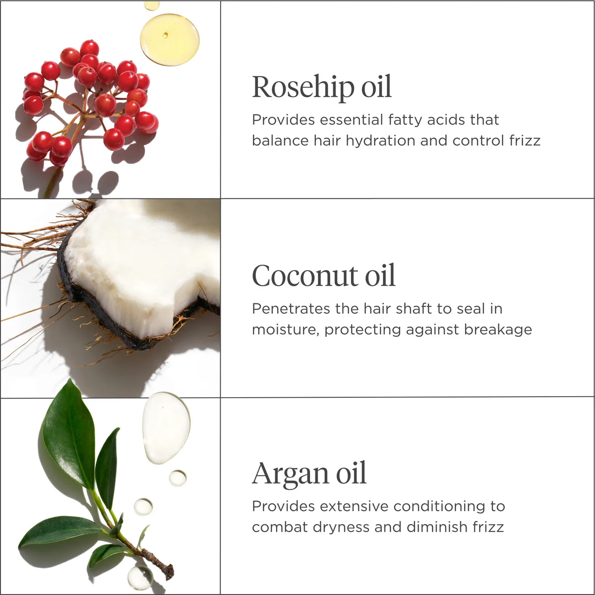 Water/Aqua/Eau, Aloe Barbadensis Leaf Juice*, Polyquaternium-37, Rosa Canina Fruit Oil*, Argania Spinosa Kernel Oil*, Cocos Nucifera (Coconut) Oil*, Laminaria Saccharina Extract*, Bambusa Arundinacea Leaf Extract*, Panthenol, Trametes Versicolor Extract*, Tocopheryl Acetate, Glycine Soja (Soybean) Oil*, Propylene Glycol Dicaprylate/Dicaprate, Hydrolyzed Corn Protein*, Hydrolyzed Wheat Protein*, Hydrolyzed Soy Protein*, PPG-1 Trideceth-6, Sorbitol*, Glycerin*, Leuconostoc/Radish Root Ferment Filtrate*, Citrus Aurantium Dulcis (Orange) Peel Oil*, Citrus Paradisi (Grapefruit) Peel Oil*, Citrus Limon (Lemon) Peel Oil*, Citrus Tangerina (Tangerine) Peel Oil*, Abies Sibirica Oil*, Polyquaternium-10, Cetrimonium Chloride, Fragrance (Parfum), Dehydroacetic Acid, Benzyl Alcohol