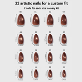 Celebritips offers press-on nails that enhance the graceful look of your hands and guarantee the perfect fit and shape. Our partnership with a renowned manufacturer in the Gel-X tips industry enables us to design size-inclusive, durable nail molds that naturally enhance your finger shape. Each design in our collection is a collaborative effort with top-tier nail artists, replicated meticulously on our 15 to 16-sized nail molds. Enjoy the salon-like experience at a fraction of the price.