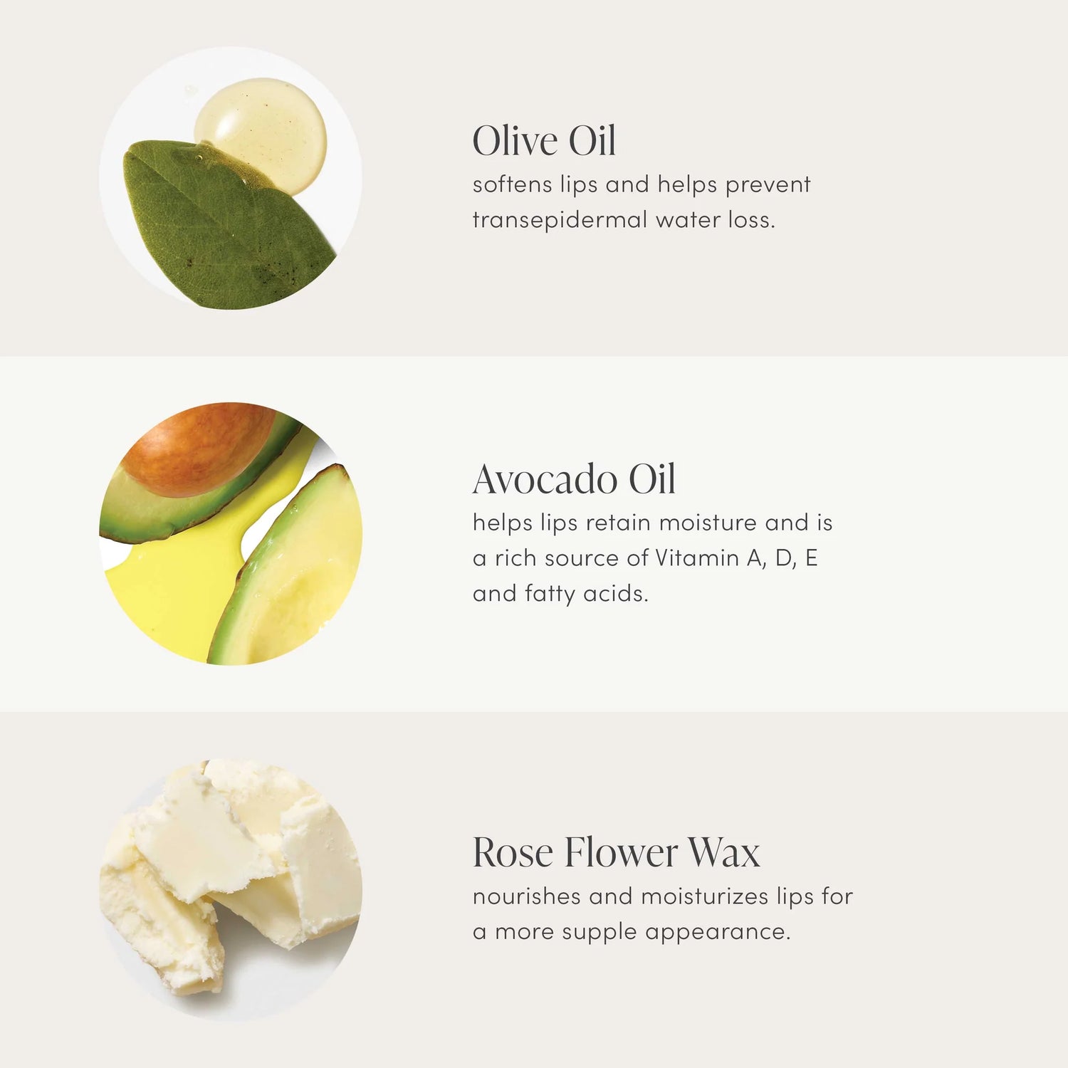 Triisostearyl Citrate, Olea Europaea (Olive) Fruit Oil, Persea Gratissima (Avocado) Oil, Cucurbita Pepo (Pumpkin) Seed Oil, Cera Alba (Beeswax), Simmondsia Chinensis (Jojoba) Seed Oil, Punica Granatum (Pomegranate) Extract, Rubus Fruticosus (Blackberry) Fruit Extract, Vaccinium Angustifolium (Blueberry) Fruit Extract, Vaccinium Macrocarpon (Cranberry) Fruit Extract, Camellia Sinensis (White Tea) Leaf Extract, Carthamus Tinctorius (Safflower) Seed Oil, Rosa Damascena Flower Wax, Tocopherol, Ascorbyl Palmitate, Citric Acid