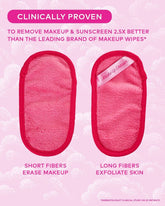 Erase all makeup with JUST WATER™ including waterproof. Patented, water-activated, cloud-soft fibers gently & easily remove all makeup & sunscreen from pores. 2 in 1 benefit: one side erases makeup & one side exfoliates skin.