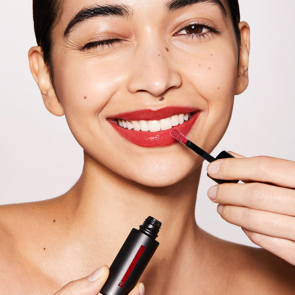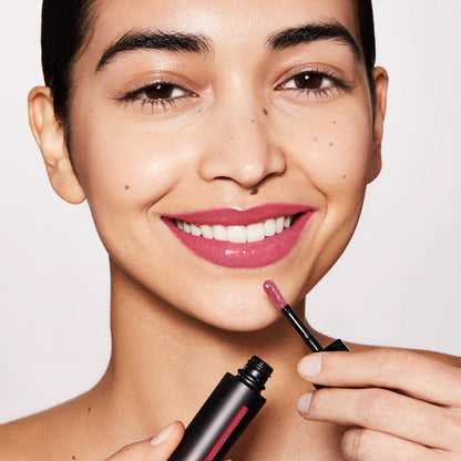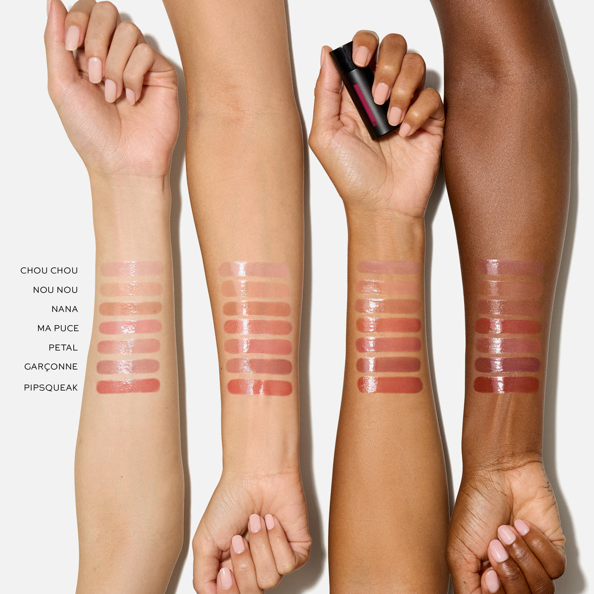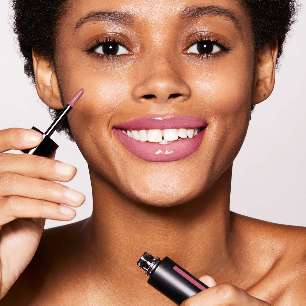 Sheer lip-boosting shades melt on contact to enhance tone in a single swipe. Wear alone or layer over Lip Suede Matte Lipstick to add depth and shine without stickiness.
